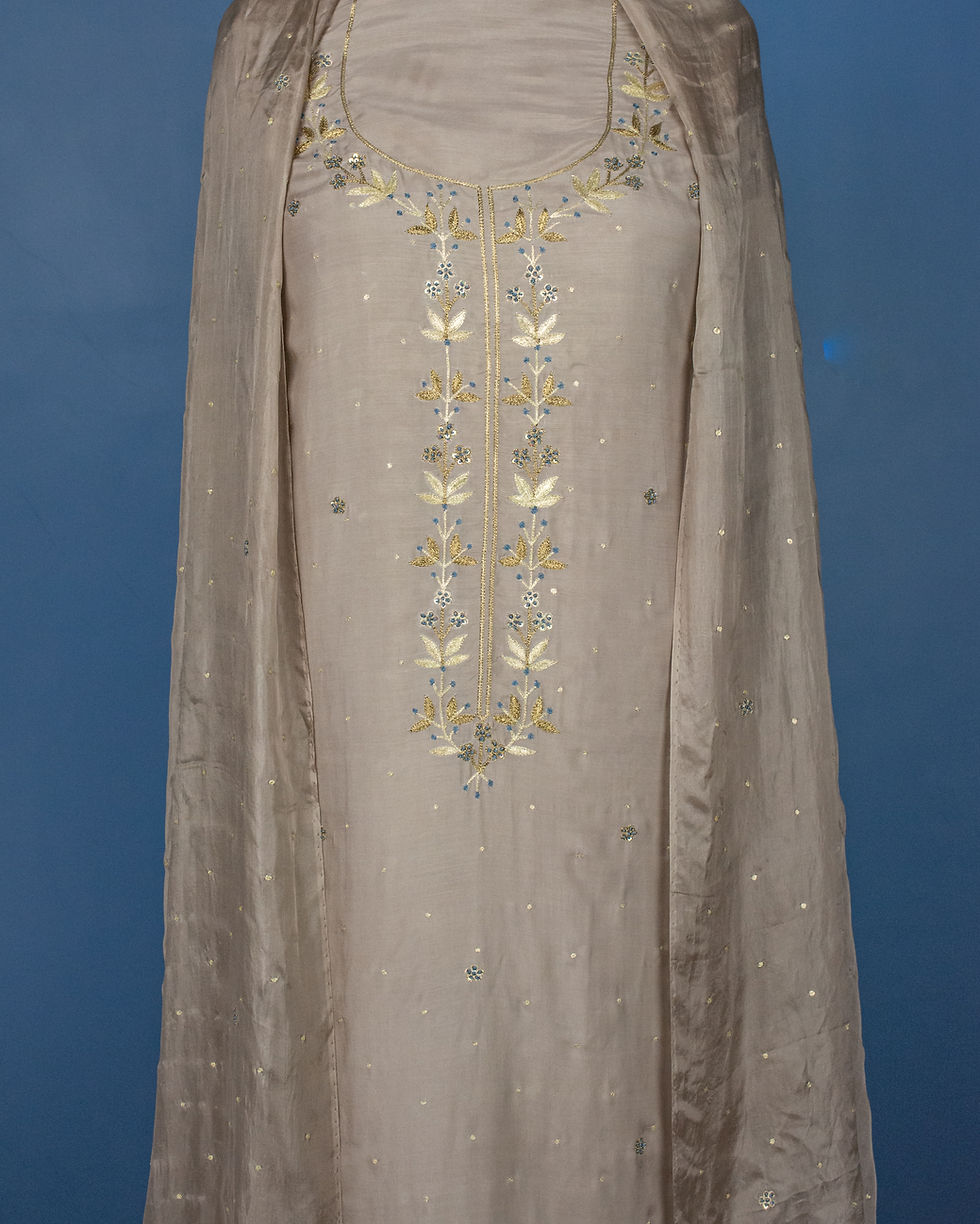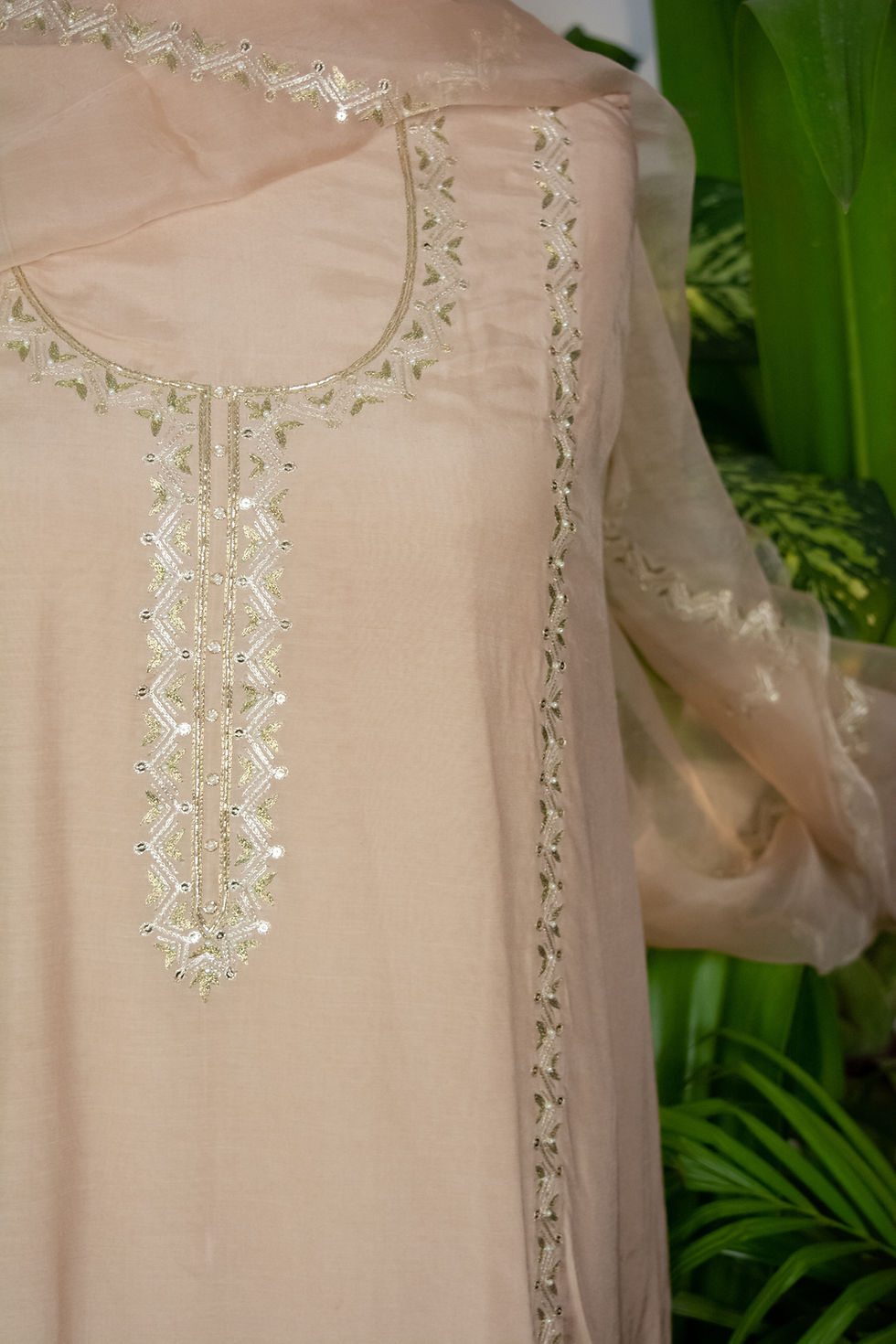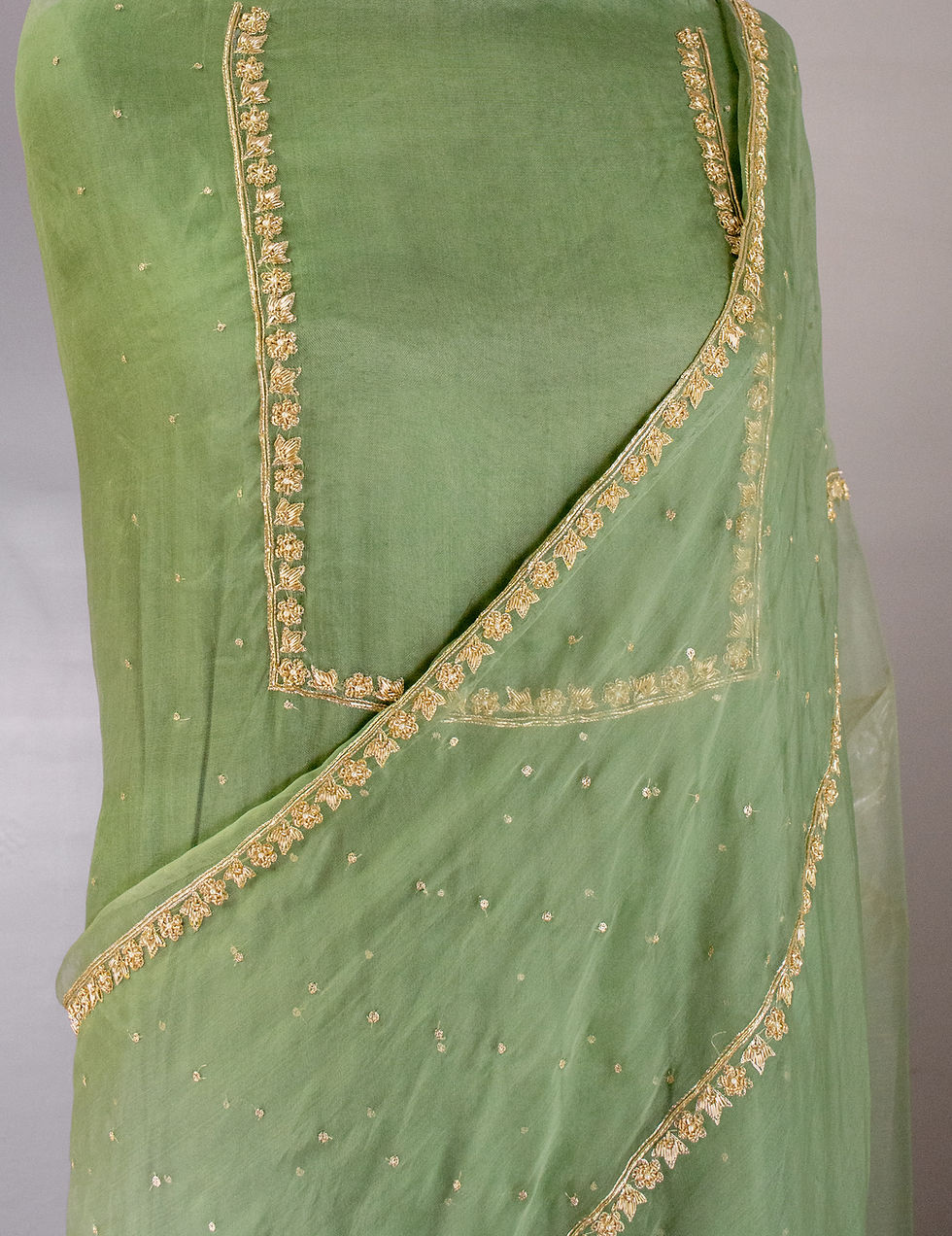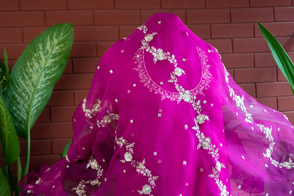 The fabric for the shirt is a benarsi brocade in chanderi, further hand embroidered using the traditional techniques of Aari and Zardozi.